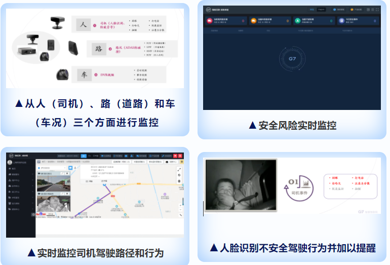 荣润购置了先进的主动安全设备G7系统安装在所有自有车辆上,记录并保证每一台大货车的行驶位置和人员安全情况,实时警报各种不安全的驾驶习惯,做到对每辆车的安全驾驶保驾护航。
