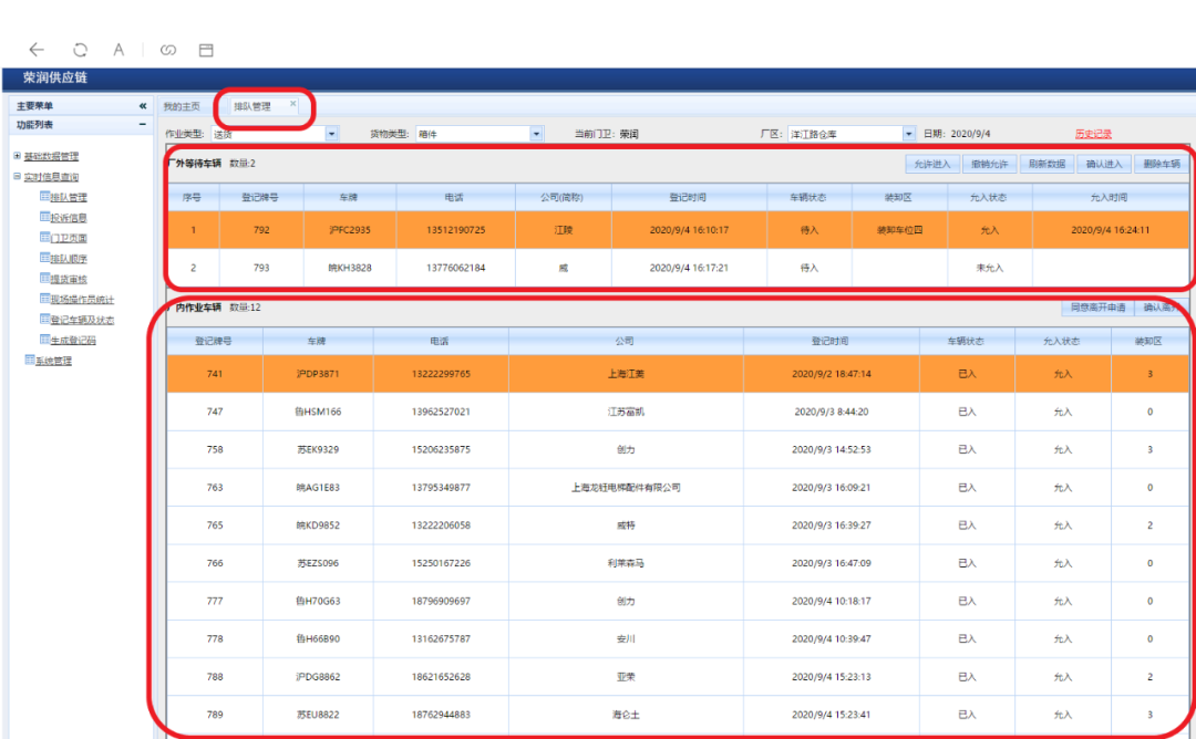 为了解决现场工作人员和送货司机之间的沟通效率问题,彼洋荣润编译了自己的排队管理系统。通过数据可视,很方便地对库内外车辆的排队顺序进行管理,降低了司机之间的摩擦,减少调度操作和司机的等候时间,更科学、合理地安排作业。